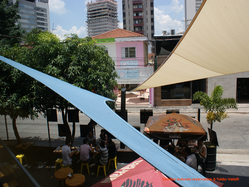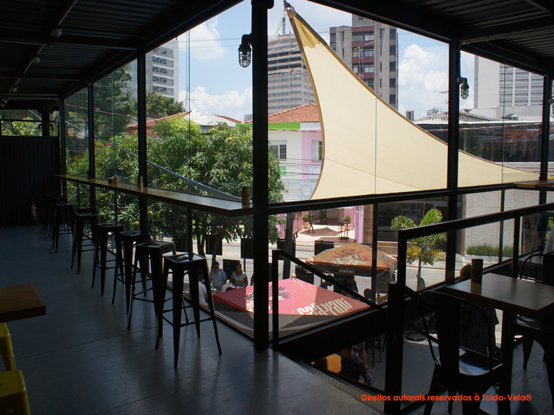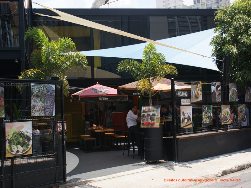 – Bloqueio dos Raios Solares: Para reduzir a temperatura da área do piso cimentado em frente ao estabelecimento, obtendo um “Conforto Térmico” e,