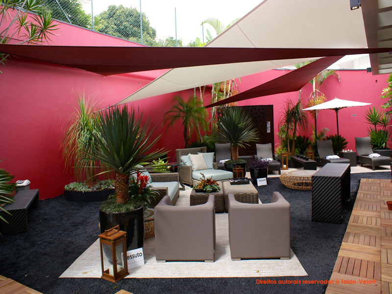 Fizeram parte desse projeto paisagistas, decoradores, designers, arquitetos e a Toldo-Vela® estava presente com materiais Gale Pacific, Commercial®95 na cor Deep Ochre e membrana Precontraint®602 da Serge Ferrari na cor White Translucent.